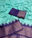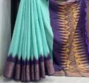 This Digital Print Chanderi Cotton Blend Saree is elegant and lightweight making it perfect for all day comfort. The temple border and vibrant light blue purple combination add a beautiful traditional charm.