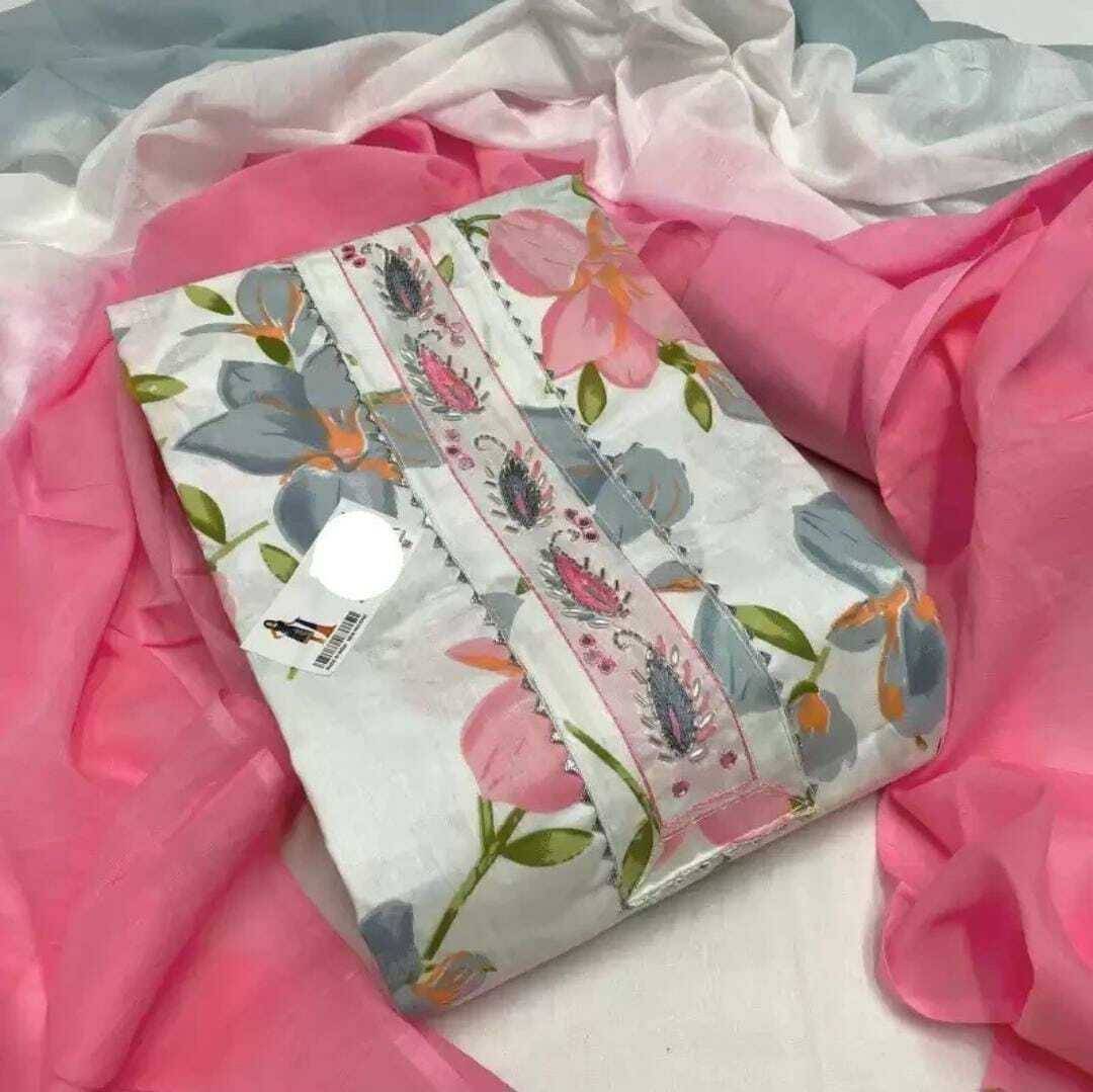 unstitched dress material, Salwar suit material with cotton dupatta, Package Contains : 1 Top, 1 Bottom, 1 Dupatta; Occasion-Party / Wedding / Traditional / Daily / Evening / Office / Work, Top Size : 2.35 Meter, Bottom Size : 2.35 Meter, Dupatta Size : 2.10 Meter, Care Instructions: Hand wash warm wash with like colors only non-chlorine bleach when needed tumble dry low warm iron if needed.Note :There might be little share variation between the actual product and image shown on the screen due to photography effect,Images are for referral purposes only. The actual product is unstitched