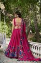 Designed to create a poised silhouette, this lehenga choli set ensemble pairs a matching blouse piece with a flowing lehenga skirt that moves with smooth continuity. The semi-stitched lehenga allows room for personalised fitting, while the side zipper closure brings convenience and a neat finish. And the blouse comes unstitched, offering flexibility for tailored styles that align with individual preferences.