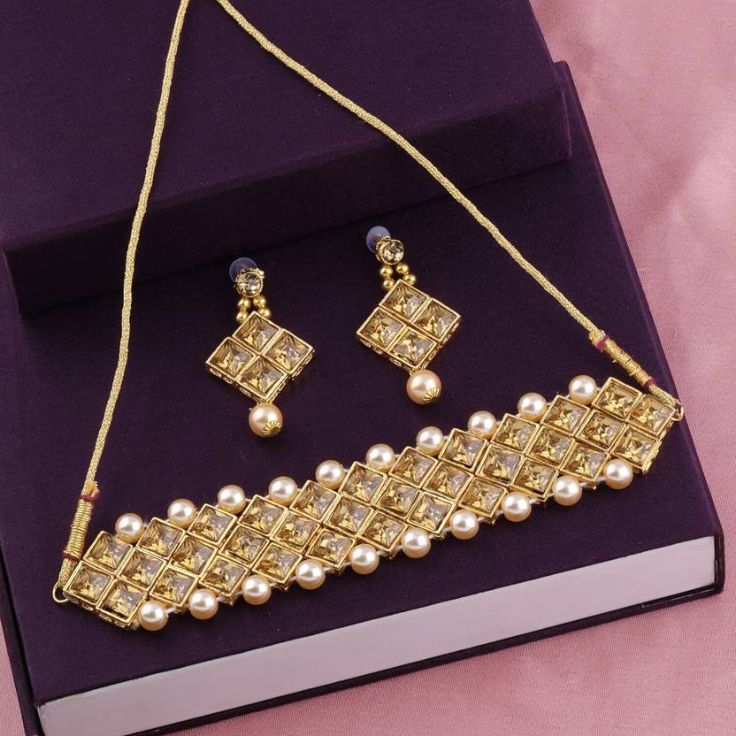 Gold Plated Jewellery Choker Necklace Set For Women consist of 1 Necklace set with 1 Pair of Earring.Exclusive Traditional, Part Wear, Fancy, Stylish, Eye Catching Necklace Set,mala,Pearl Set and all with Stunning Earring for bridal jewellery Set For Women And Girls,consist of 1 Necklace and 1 Pair of Earring.This Jewelry set can be wear it on different occasion,that can be adore a Women or Girl.Necklace is secured with drawstring closure.A pair of matching Earrings,secured with post-and-back closure. Stay Stylist And Keep Shinning With Jewelry.