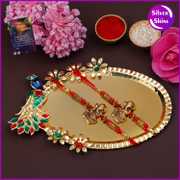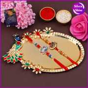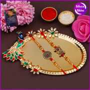 Silver Shine Present a RAKHI CELEBRATION Rakhi Combo your Brother with this Unique Designer Rakhi .Celebrate Elder brother, Sibling hood (RAKSHABANDHAN) This Year With Amazing RakhiS Designe. Send Your Love And Shower joy to your Brother with this Unique Designer Rakhi . Our exclusive collection have lovely handcrafted Rakhi to complement creative and unique look. Our Traditional According Rakhi Celebration Complet Pooja Thali Kumkum chawal roli We provide you rakhi with Kankawati Pooja thali kumkum chawal .