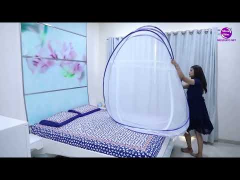 Adbra Polyester Adults Washable Foldable HDPE - High Density Poly Ethylene Washable Adults Mosquito Net White And Blue, Tent