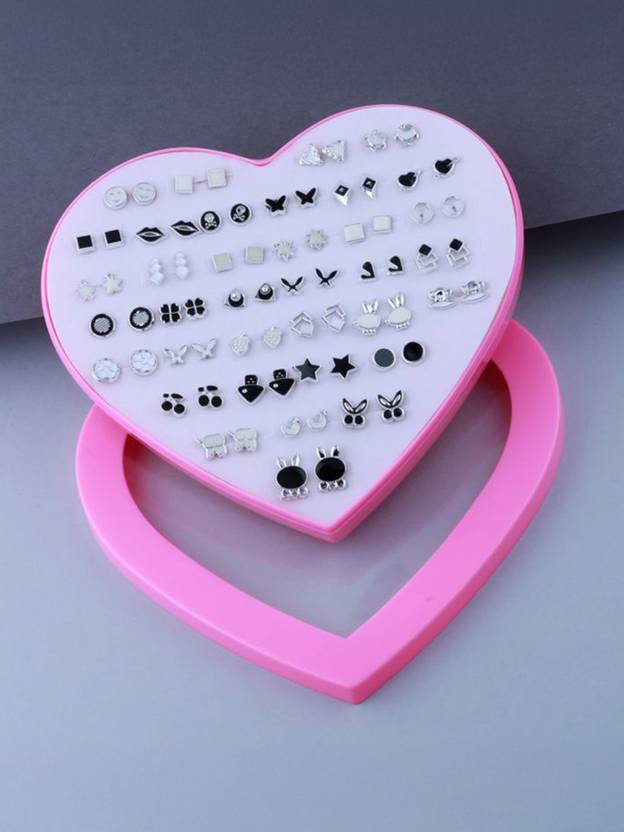 SILVER SHINE Silver Shine Stud Earring White-Black look Set of 36 Earrings Plastic Stud Earring