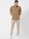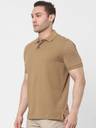 Silver Swan Solid Men Polo Neck Beige T-Shirt