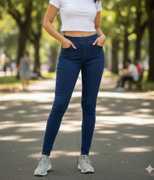 Upgrade your daily wardrobe with the Silver Threads High-Rise Denim Jeggings, where style meets serious functionality. We know the struggle—you want the sleek look of skinny jeans but you hate the stiffness, and you’re tired of "fake pockets" that hold nothing.These jeggings come with two deep, totally functional front pockets so you can actually carry your essentials. We’ve also removed the back pockets completely to give you a smooth, sculpted look that highlights your curves without any bulk.Finished in a classic dark blue indigo wash, these feature a pull-on elastic waistband that eliminates button-digging. Pair them with a crop top and sneakers for a sporty vibe, or a kurti for a chic ethnic look.