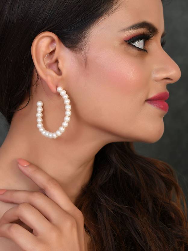 Gold Plated Pearl Beads Half Hoop Earrings Pearl Brass Hoop Earring