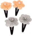 Silvermerc Designs Set of 2 Grey & Orange Floral Tic Tac Hair Clip Tic Tac Clip (Multicolor)