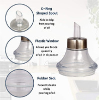 The spout on this dispenser bottle includes an O-ring that helps control the flow of liquid, allowing for a steady, smooth pour each time. This design prevents sudden bursts or splashes, so you can pour oils or vinegar with more accuracy and less mess. The O-ring also helps seal the spout when it’s not in use, keeping the contents fresh and preventing drips.