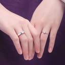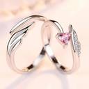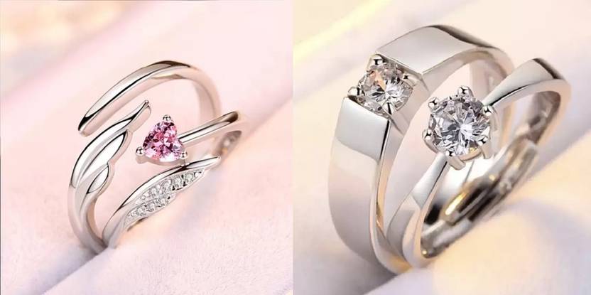 SILVOSWAN Stylish Angel Wings & Single Stone Adjustable Couple Ring Stainless Steel Silver Plated Ring Set