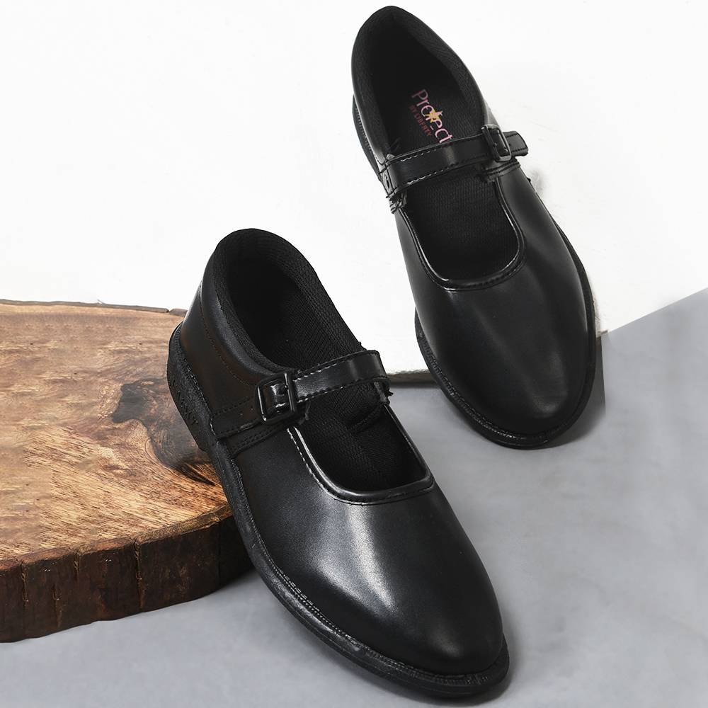 SIMATA Girls Buckle Ballerinas (White, 3-4 Years)