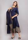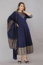 Women Printed Cotton Rayon Anarkali Kurta (Dark Blue)