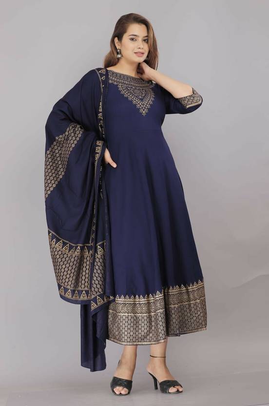 Simple Creation Women Printed Anarkali Kurta (Dark Blue)