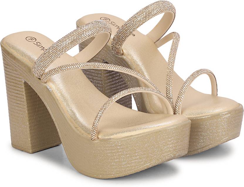 SIMPLEX Women Heels Sandal (Gold , 6)