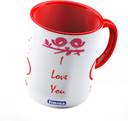 simran Alphabet R I Love You Red Ceramic (SIRMAB018) Ceramic Coffee Mug (350 ml)