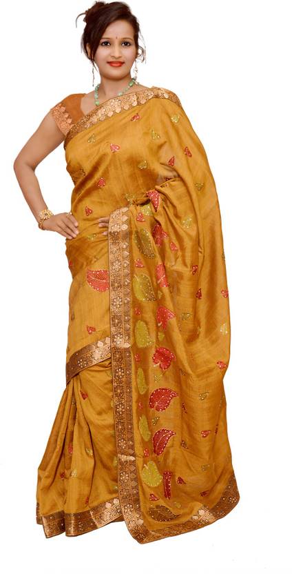 Embroidered Banarasi Tussar Silk Saree (Gold)
