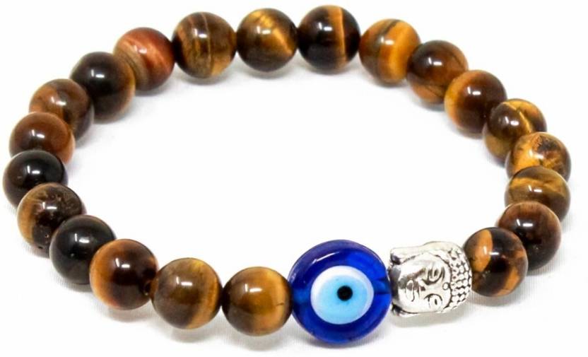 Evil eye buddha face charm & Tiger eye beads 8mm bracelet