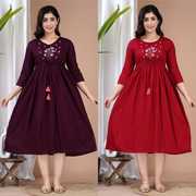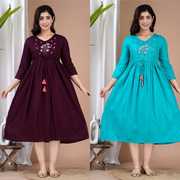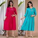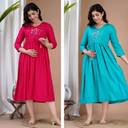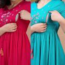 "Simran"The Feeding top has been designed uniquely plits around tummy area to hide Pre and Post Pregnancy baby bump beautifully This Anarkali Gown Style Western Dress is lightweight, breathable, stretchy & incredibly soft to the skin. Maternity Wear With zipping: Both side invisible vertical zippers for easy Breastfeeding access. This great feature is also, convenient as a maternity nursing dress because you can easily open and close it anywhere at any time to breastfeed your baby it also suits as a sleepwear needs and a great Maternity Wear for Home & Office wear use Feeding Dress With Breathable Fabric: Maternity Dress made of breathable cotton fabric that allows air circulation and keeps you cool all day long. Be A Mom In Style: We understand that Breastfeeding can be uncomfortable at many occasion that's why we offer innovative Feeding wear with easy concealed nursing access so you can style yourself with confidence. Wear this stylish and comfortable Nursing dress