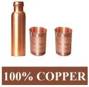 Stylish Copper Bottle & 2 Copper Glass Set (100% Copper)JG1