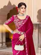 Sinauli Embroidered, Woven Mysore Silk Blend, Velvet Saree (Purple)