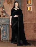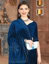 Self Design Bollywood Velvet, Cotton Blend Saree (Light Blue)