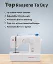 You can easily learn tailoring skills or stitching techniques with the Singer Fashion Maker 1409 Electric Sewing Machine. Thanks to its up to nine inbuilt stitching patterns, this sewing machine offers multiple stitching options, including stretch, basic, and decorative stitches. Furthermore, courtesy of its four-step buttonhole function, this sewing machine enables you to conveniently and rapidly stitch buttonholes in your clothes. Additionally, you can easily sew in the reverse direction for strong stitches with its automatic reverse option.