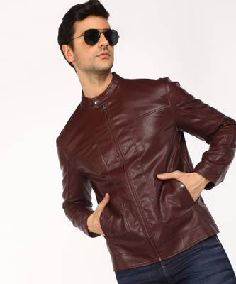 Men Solid Leather Jacket