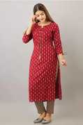 SAAR SUMRAN Women Floral Print Straight Kurta (Maroon)
