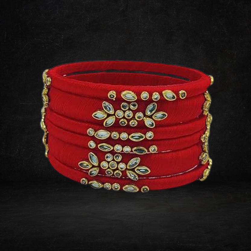 Add a pop of color to your outfit with our RED HANDMADE SILK THREAD BANGLES. Handcrafted with precision and attention to detail, these bangles are designed to elevate your style. Made from high-quality silk thread, they are durable and comfortable to wear all day long. Bring a touch of sophistication to any occasion with these designer bangles.