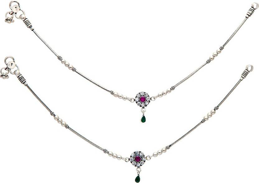 Siri Creations Plain With Stones Dropings 92.5 Silver Anklet (Pack of 2)