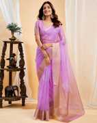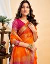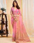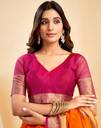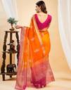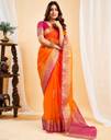 Discover A Stunning Assortment Of Beautifully Crafted Sarees At Siril Sarees.Saree Fabric : Organza & Blouse Fabric : Organza :: Saree Color : Orange & Blouse Color : Rani Pink :: Saree Work : Sequins Embroidery, Jacquard (Weaving) & Blouse Work : Jacquard (Weaving) Border :: Saree Length : 5.10 Mtr & Blouse Length 0.80 Mtr