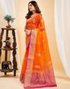 Organza Sequins Embroidery & Jacquard (Weaving) Orange Color Saree With Blouse