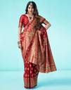 Banarasi, Bright Banarasi, Brocade, Contemporary collection, Day Festive, Fancy Border, Festive Look, Gold Motifs, Gold Woven, Heavy Designer Look, Kanjeevaram, Occasional Sari/Party Sari, Red Silk, Silk, Silk collection, Solid saree with contrast border, Tassels, Thick border, Traditional collection, Wedding Look, Zari border