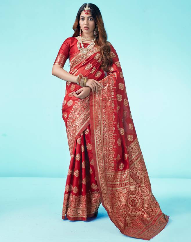 Art Silk Jacquard (Banarasi) Red & Gold Color Saree With Blouse
