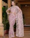 Net Dyed & Sequence Embroidery Work Dusty Pink Color Saree With Blouse Piece