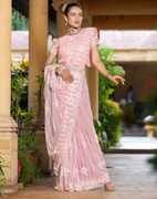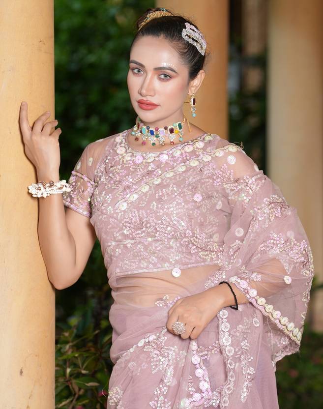 Explore the collection of beautifully designed sarees from Siril Sarees. Saree Fabric : Net & Blouse Fabric : Net :: Saree Color : Dusty Pink & Blouse Color : Dusty Pink :: Saree Work :Dyed & Sequence Embroidery Work & Blouse Work : Dyed & Sequence Embroidery Work