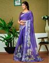 Linen Printed, Zari Border Purple Color Redy To Wear Saree With Blouse