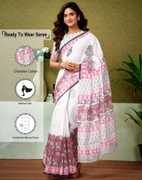 Explore the collection of beautifully designed sarees from Siril Sarees. Saree Fabric : Chanderi Cotton & Blouse Fabric : Chanderi Cotton :: Saree Color : White & Blouse Color : White, Multi :: Saree Work :Printed (Ready To Wear) & Blouse Work : Printed