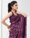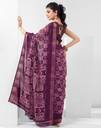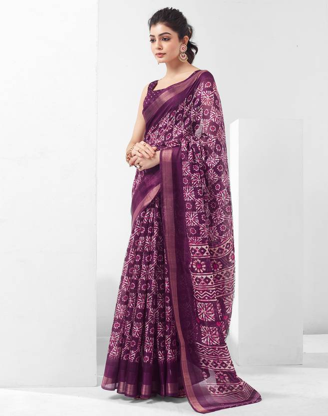 Discover A Stunning Assortment Of Beautifully Crafted Sarees At Siril Sarees . Saree Fabric : Cotton Blend & Blouse Fabric : Cotton Blend :: Saree Color : Deep Purple, Off White, Magenta & Blouse Color : Deep Purple, White :: Saree Work : Printed, Self Woven, Zari Stripe, Gold Zari Border & Blouse Work : Printed, Self Woven, Gold Zari Border, Zari Stripe