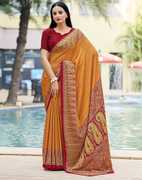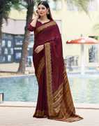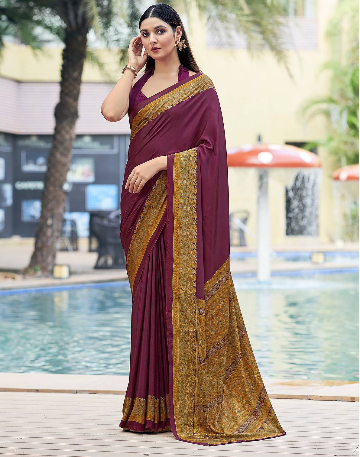 Silk Crepe Printed Wine color Saree With Blouse Piece