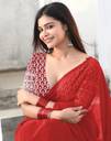Solid/Plain, Embroidered Daily Wear Georgette Saree (Red)