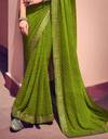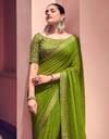 Georgette Leheriya Printed & Lace Olive Green & White Color Saree With Blouse