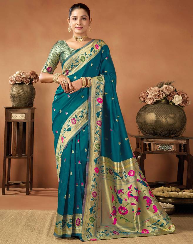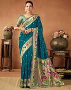 Explore the collection of beautifully designed sarees from Siril Sarees. Saree Fabric : Silk & Blouse Fabric : Silk :: Saree Color : Rama Green & Blouse Color : Rama Green, Golden, Multi :: Saree Work :Weaving & Blouse Work : Weaving