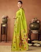 Silk Weaving Rama Green & GoldenSaree With Unstitched Blouse