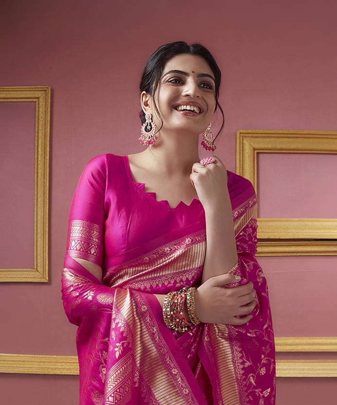 Discover A Stunning Assortment Of Beautifully Crafted Sarees At Siril Sarees. Saree Fabric : Art Silk & Blouse Fabric : Art Silk :: Saree Color : Rani Pink, Golden & Blouse Color : Rani Pink :: Saree Work :Dyed, Jacquard & Blouse Work : Dyed, Jacquard Border (Dual Tone)