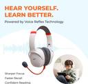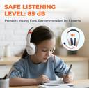 Headphones are specially designed for kids, making learning smarter and more fun. Powered by Voice Reflexology Technology, they provide real-time voice feedback that sharpens focus, boosts memory retention, and helps children grasp new concepts with ease. The memory foam ear cushions and adjustable padded headband ensure a soft, breathable, and strain-free fit, perfect for long study or play sessions. With a safe volume limit of 85dB and a high-quality speaker unit, kids enjoy clear, balanced, and lifelike audio while protecting their ears. These headphones connect effortlessly via Bluetooth or data cable, giving kids the freedom to listen, learn, or even take calls with simple controls. Each pack includes everything your child needs; SIRO Wireless Headphones, a Type-C charging cable, a detachable microphone, and a travel pouch, making it the ideal companion for study, fun, and learning anywhere.