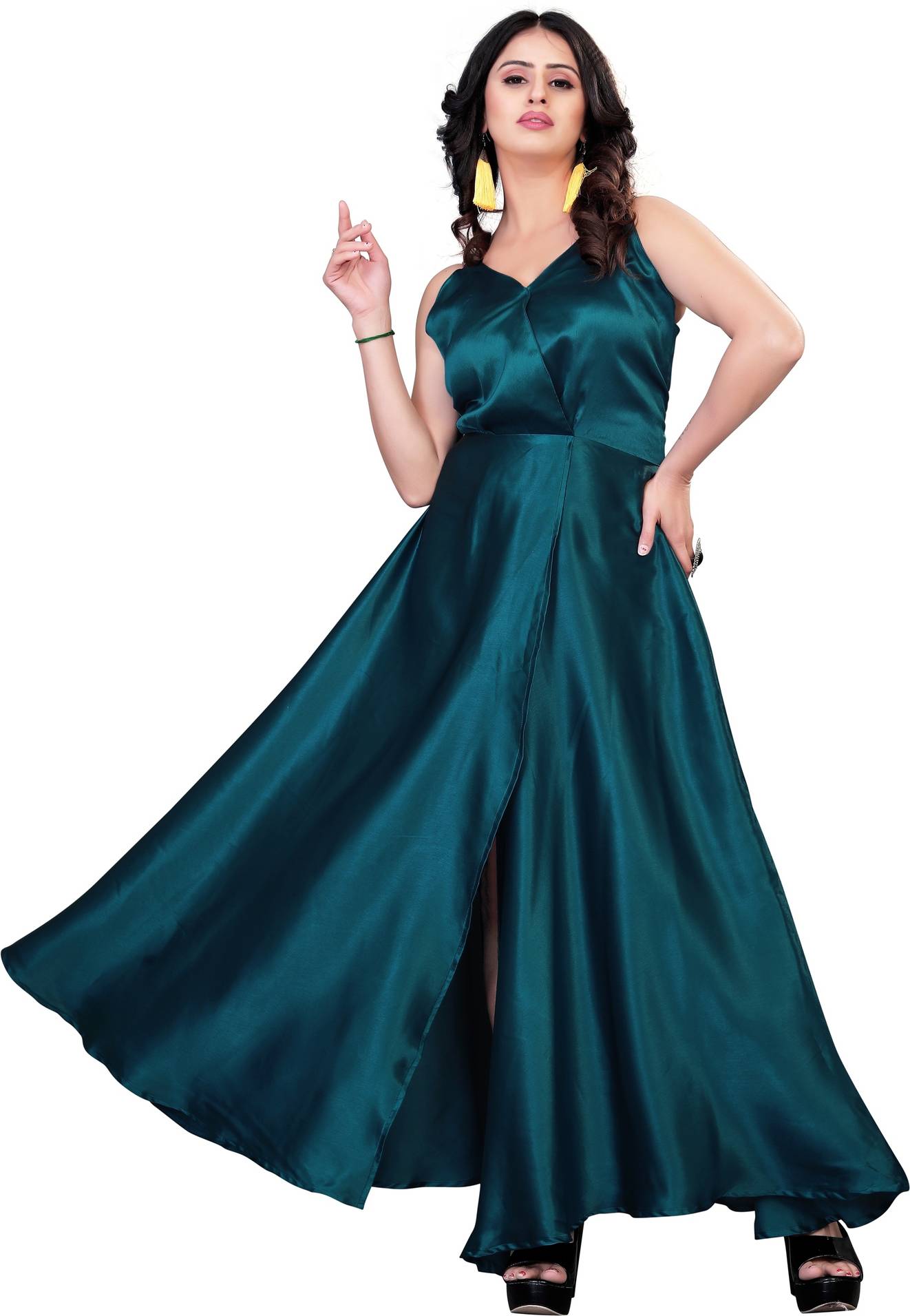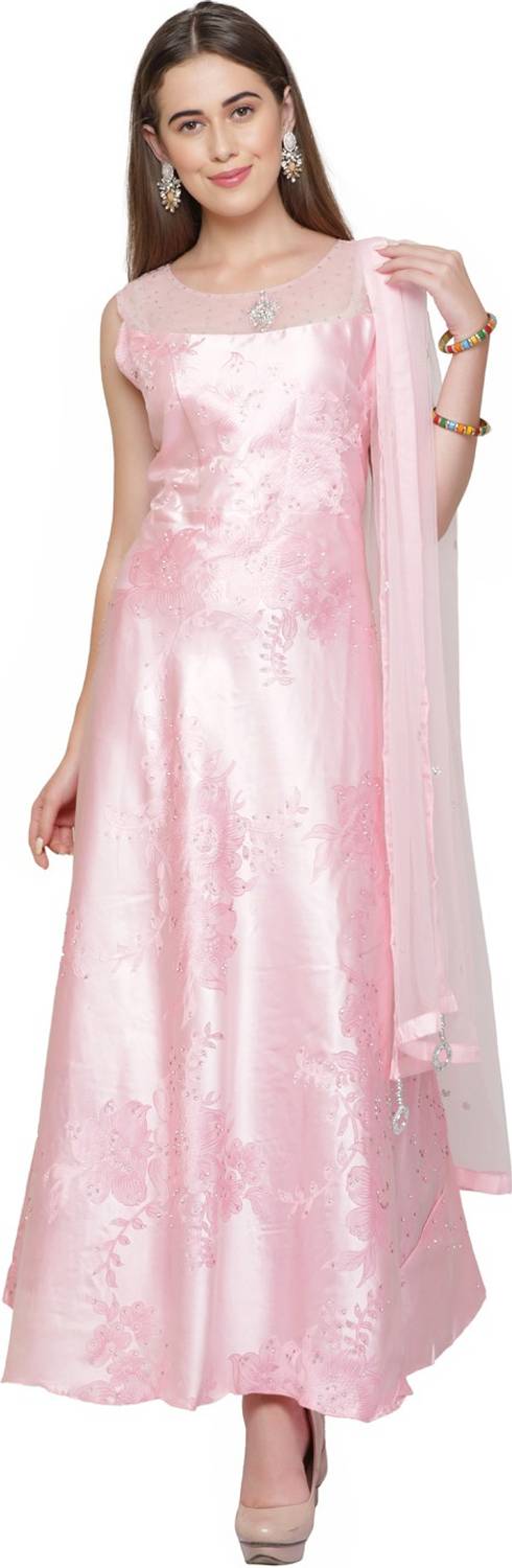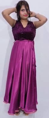 Silk Blend Stitched Flared/A-line Gown (Purple)