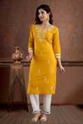 Women Chikan Embroidery Cotton Blend Straight Kurta (Black, White)