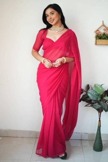 Sita Solid/Plain Bollywood Georgette Saree (Pink)