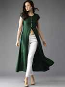 Sitara Women Solid Frontslit Kurta (Dark Green)