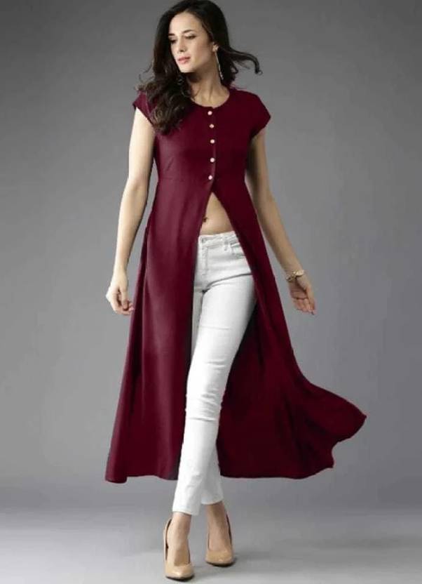 Sitara Women Solid Frontslit Kurta (Maroon)
